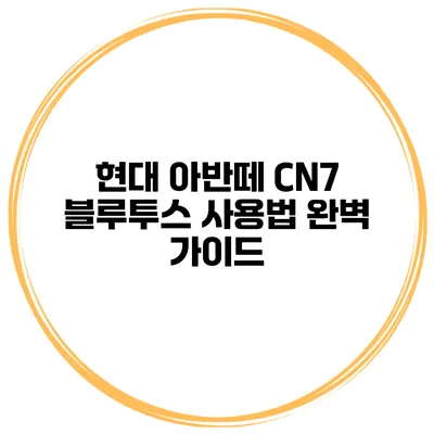 현대 아반떼 CN7 블루투스 사용법 완벽 가이드
